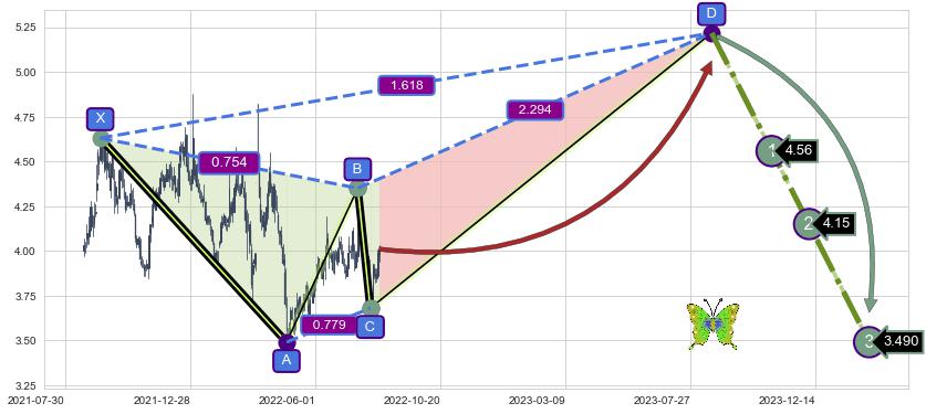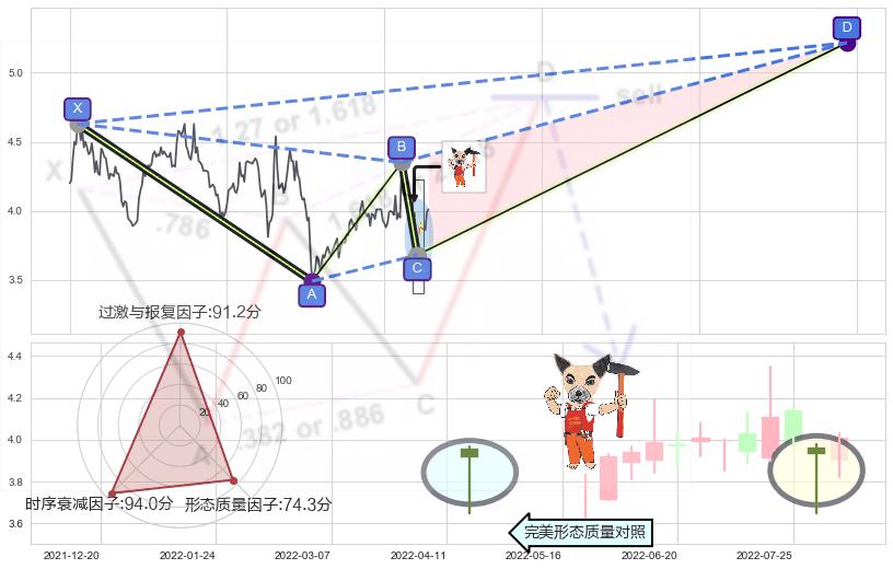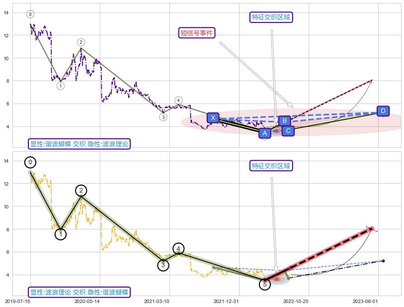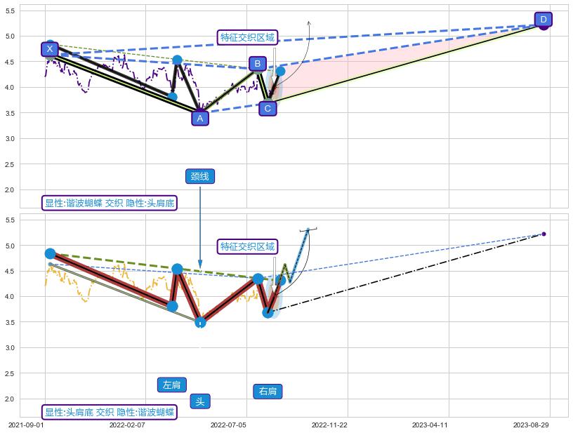➣ 未完成【蝴蝶】形态起点X: 2021-09-08, 已到达C点: 2022-08-03, 预测最终D点: 2023-08-21, 共490交易日