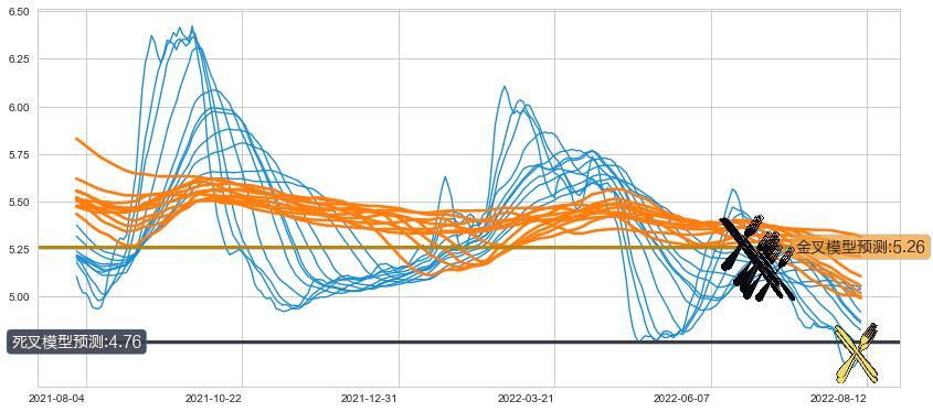 ➣ 60小时均线于(2022-06-28: 5.19)形成【死叉】基于【死叉历史模型】预测死叉后最低波谷价格: 4.76, 死叉后最低价格4.56,已经下跌超出预测最低波谷价格, 预期反弹