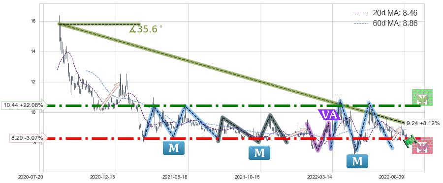 ♞ 20日均线:8.46,60日均线:8.86→ 快线<慢线