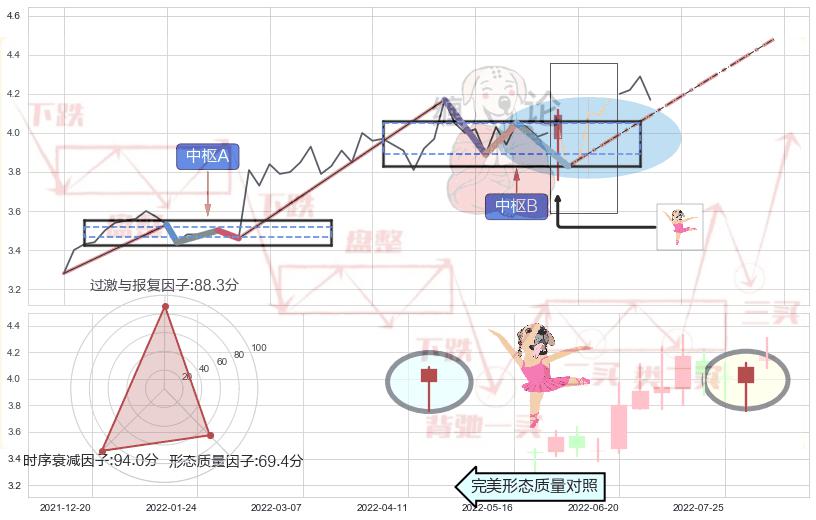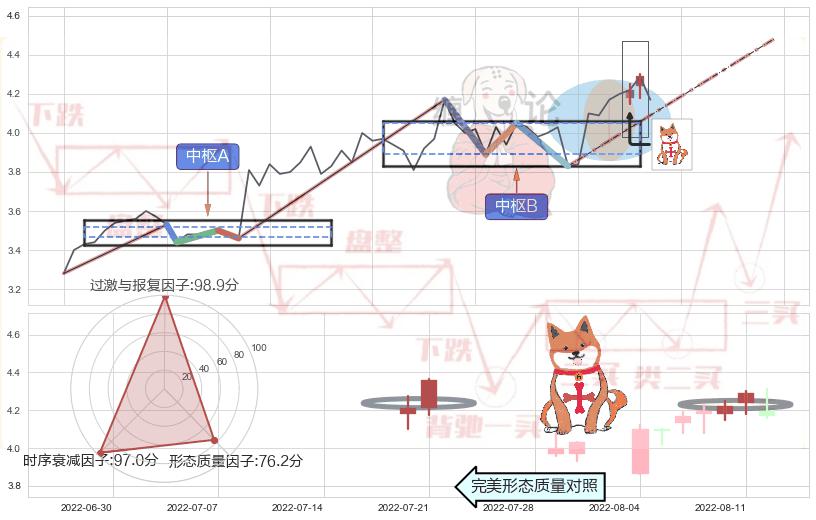 ➢ 【中枢B】:2022-07-15-2022-08-02,中枢由4笔构成,共13交易日, ZG=4.05, ZD=3.890