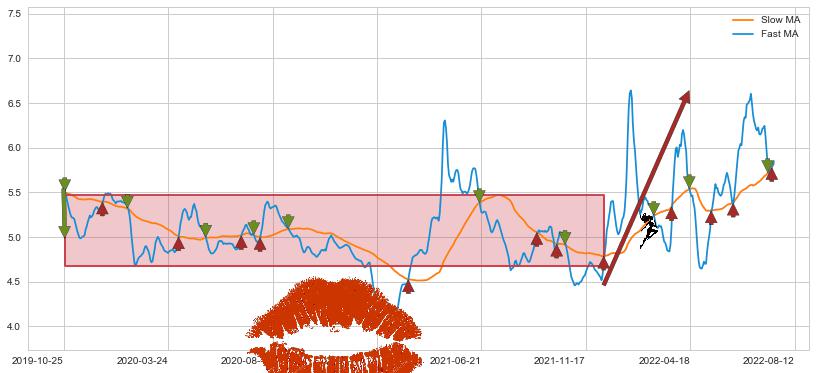 ➣ 70小时均线于(2022-05-18: 5.29)形成【金叉】基于【金叉历史模型】预测金叉后最高波峰价格: 6.82, 金叉后最高价格6.74,虽然还未上涨超出预测最高波峰价格,但横盘时间过长, 预期回调