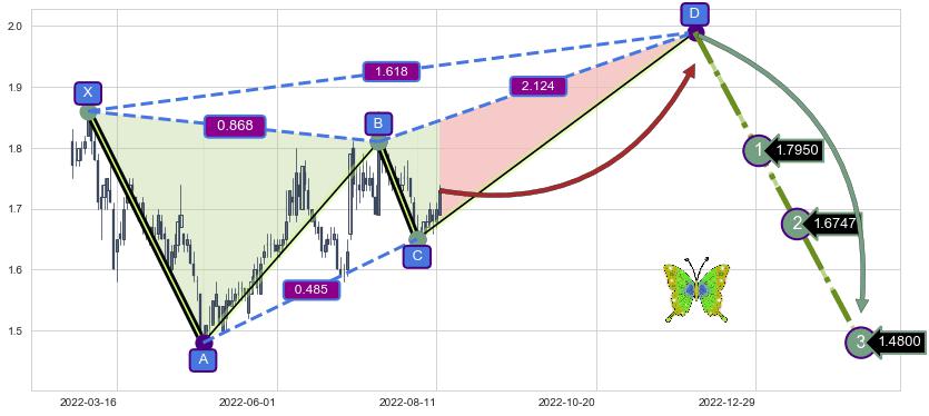 ➣ 未完成【蝴蝶】形态起点X: 2022-03-03, 已到达C点: 2022-08-03, 预测最终D点: 2022-12-02, 共191交易日