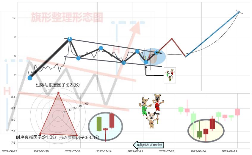 ➣ 【未确认突破,预测即将形成突破】降⚑旗形起点:2022-04-26, 预测突破点:2022-08-15,形态共76交易日