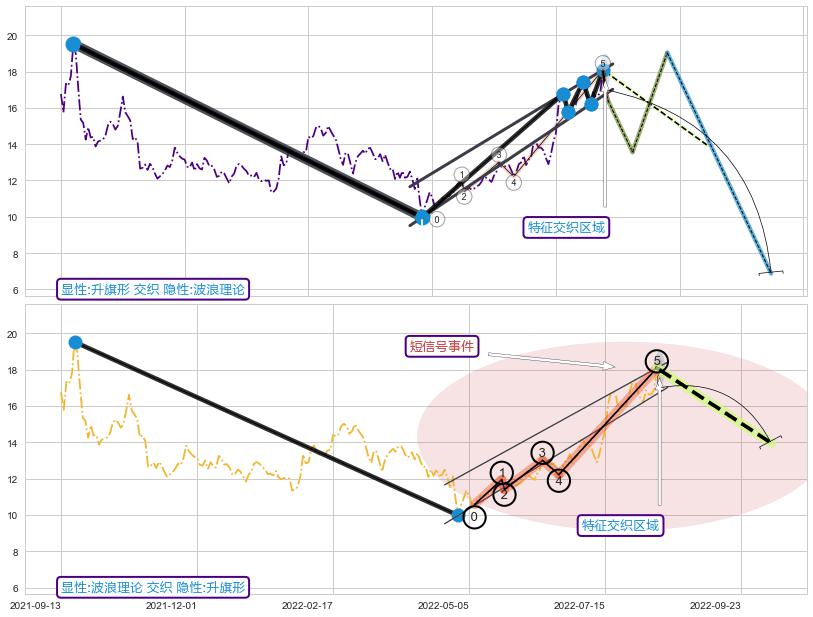 ➢ 波浪理论属【短级别信号事件】升旗形属【长级别信号事件】长短周期组合信号事件, 短长事件长度比31.94%