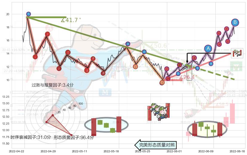 ➢ 🕰 价格走势在2022-06-16至2022-06-16期间形成看涨(低位)倒锤头线,残存影响值:0.98