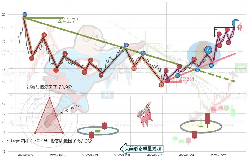 从2022-04-26至2022-08-12,共包含75个交易日,阶段股价上涨56.55%,阶段股价变动位移路程比: 1 : 2,上涨趋势角度: 26.4