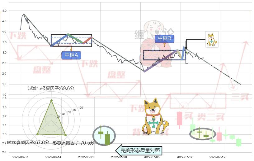 ➣ 【中枢B】:2022-04-26-2022-07-08,中枢由4笔构成,共50交易日, ZG=3.120, ZD=2.680