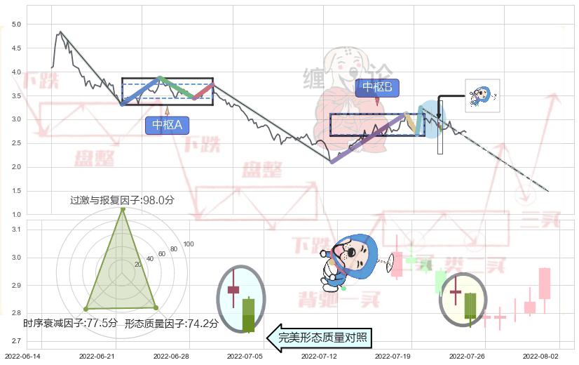 ➢ 下跌螺旋桨 🔜 缠论中枢点破位中枢B支撑下拉 综合量化分数:44.42 【偏空】