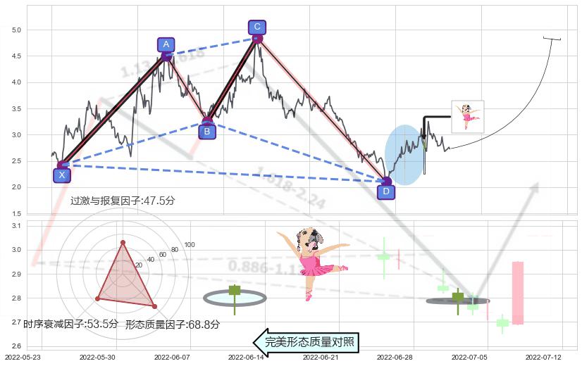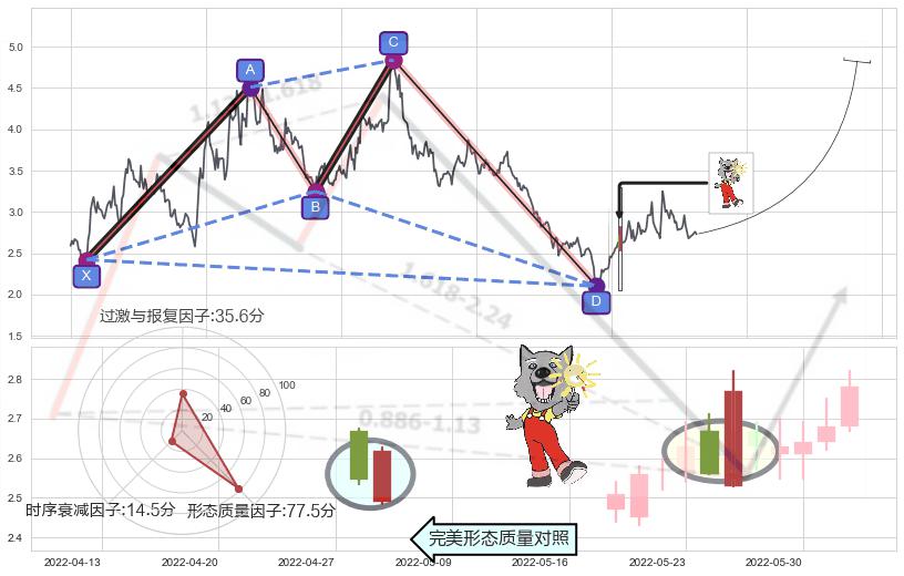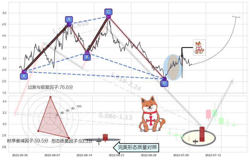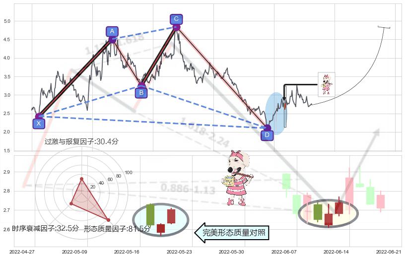 ➢ 曙光初现形态 🔜 谐波鲨鱼d拐点上涨支撑 综合量化分数:53.33 【中性】