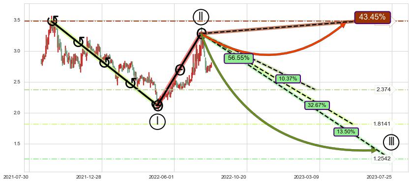 ➣ 循环浪继续向下【平均值】位置(2023-05-12, 1.8141),匹配聚类样本比例57.78%, 可能性概率32.67%