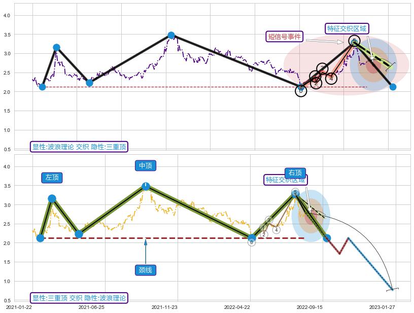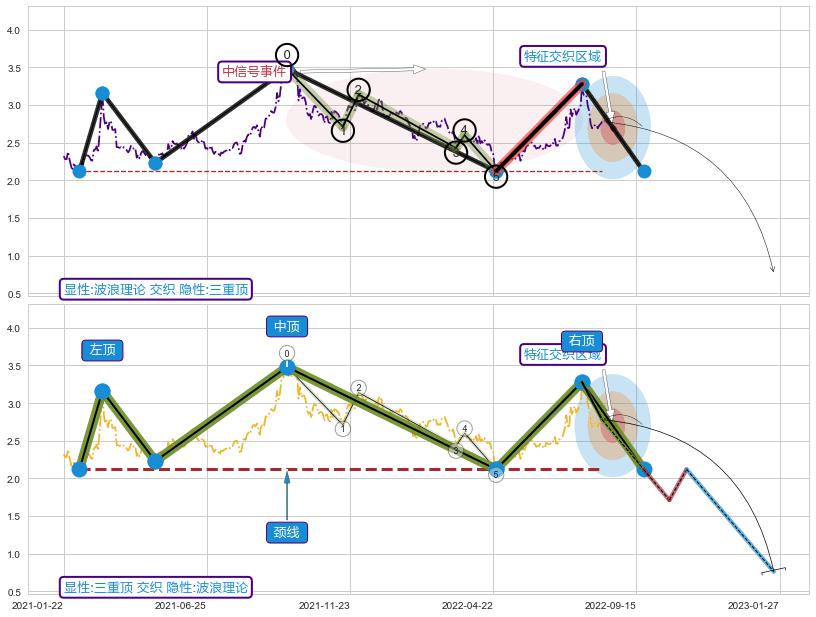 ➢ 波浪理论属【短级别信号事件】三重顶属【长级别信号事件】长短周期组合信号事件, 短长事件长度比20.44%