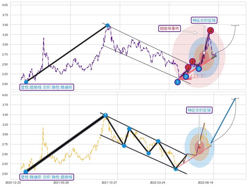 ➢ 趋势线属【短级别信号事件】降旗形属【长级别信号事件】长短周期组合信号事件, 短长事件长度比22.39%