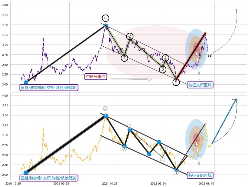 ➢ 波浪理论属【中级别信号事件】降旗形属【长级别信号事件】中长周期组合信号事件,中长事件长度比61.79%