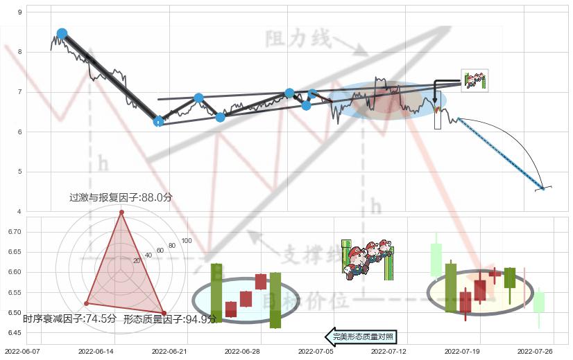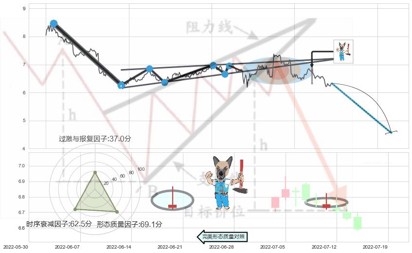 ➢ 🕰 价格走势在2022-07-15至2022-07-21期间形成下降三部曲(降势三鹤),残存影响值:-6.88