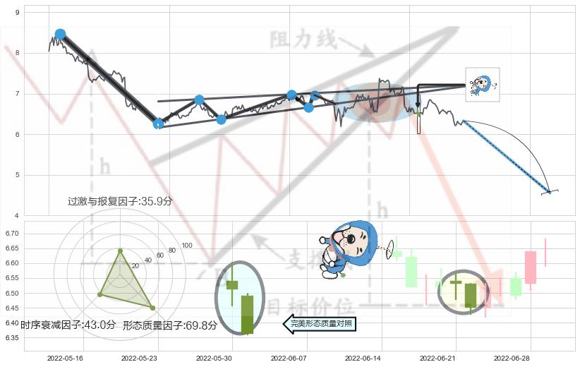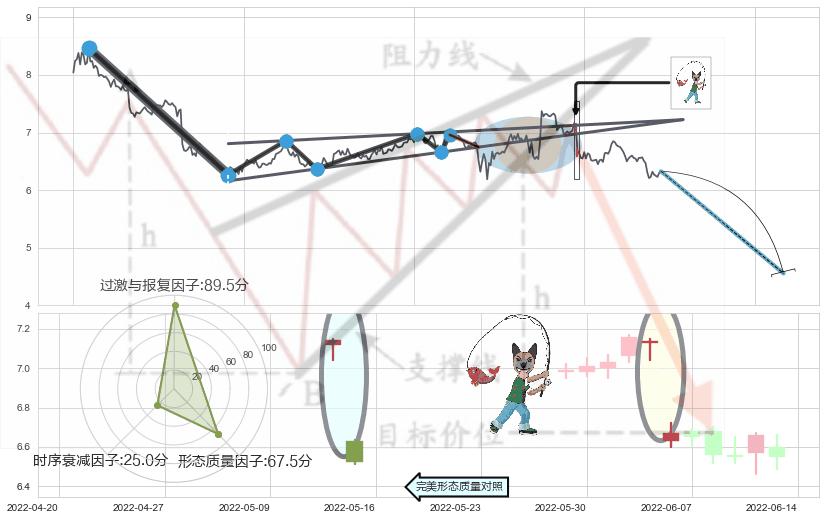 ➢ 🕰 价格走势在2022-06-02至2022-06-06期间形成吊颈线(上吊线),残存影响值:-2.65