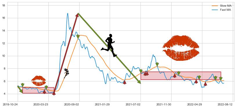 2021-07-05至2022-07-29 慢线与快线多次接触,存在上下穿越,有缠绕