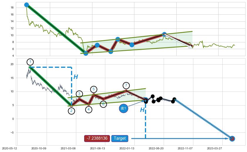 ➣ 最小中继整理跌幅→𝐇: 14.10 (𝐇旗杆的长度:旗杆起点→顶点)