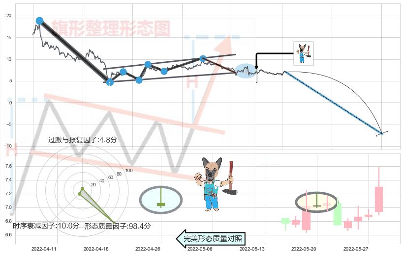 ➢ 看跌(高位倒锤头)流星线 🔜 升旗形支撑破位转换阻力下跌 综合量化分数:43.31 【偏空】