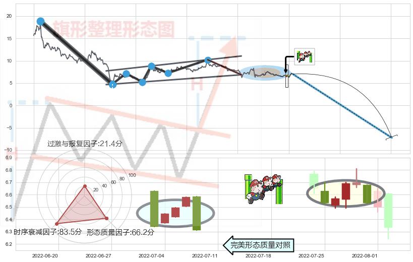 ➢ 射击之星形态 🔜 升旗形支撑破位转换阻力下跌 综合量化分数:42.06 【偏空】