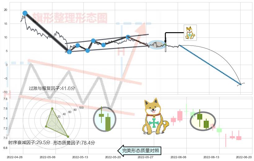 ➢ 下跌孤独十字星 🔜 升旗形支撑破位转换阻力下跌 综合量化分数:41.53 【偏空】