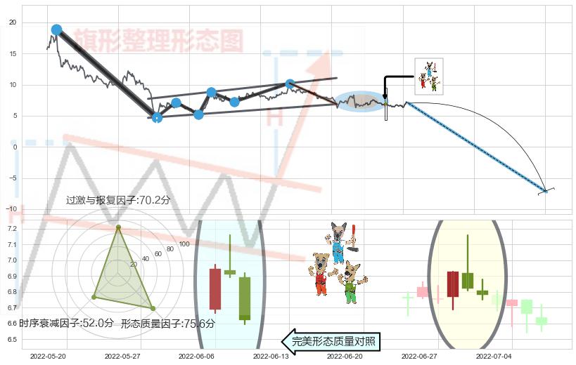 ➢ 🕰 价格走势在2022-06-13至2022-07-11期间形成高档五阴线,残存影响值:-5.71