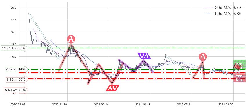 ♘ 阻力价格位7.37,可信任强度83.73%,距离最后交易2022-08-12形成的收盘价格7.01相差 +5.14%