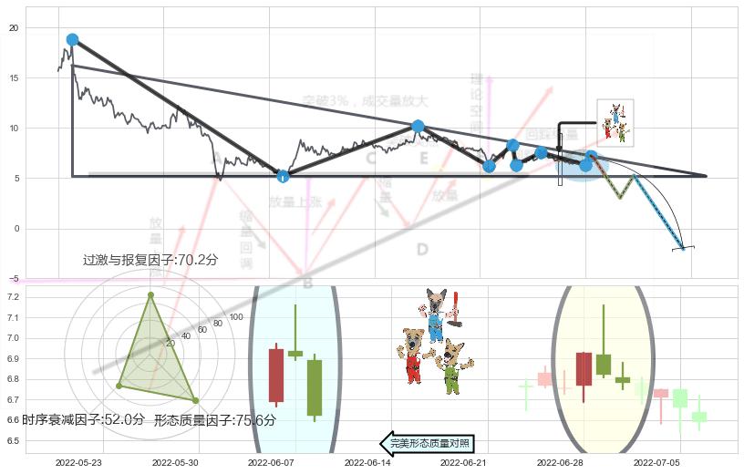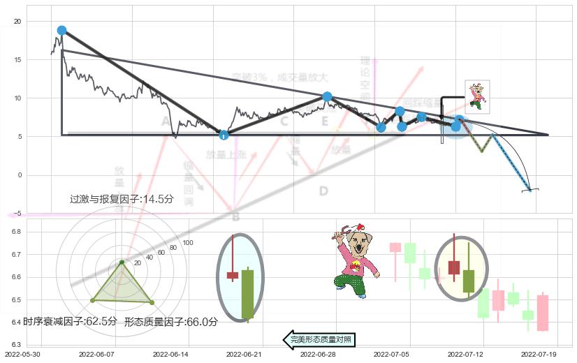 ➢ 🕰 价格走势在2022-06-13至2022-07-11期间形成高档五阴线,残存影响值:-5.71