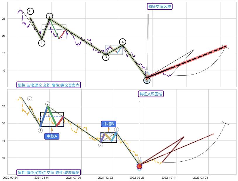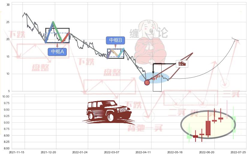 ➣ 缠论买卖点:下降缠中枢AB形成后猜想拐点1买已到达,猜想后续持续拉升(均值回复)