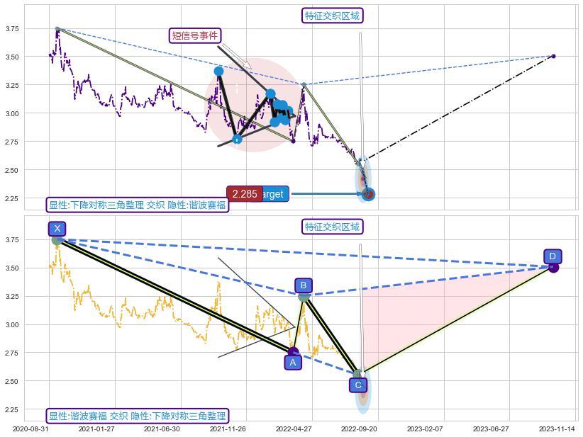 ➢ 下降对称三角整理属【短级别信号事件】谐波赛福属【长级别信号事件】长短周期组合信号事件, 短长事件长度比23.59%