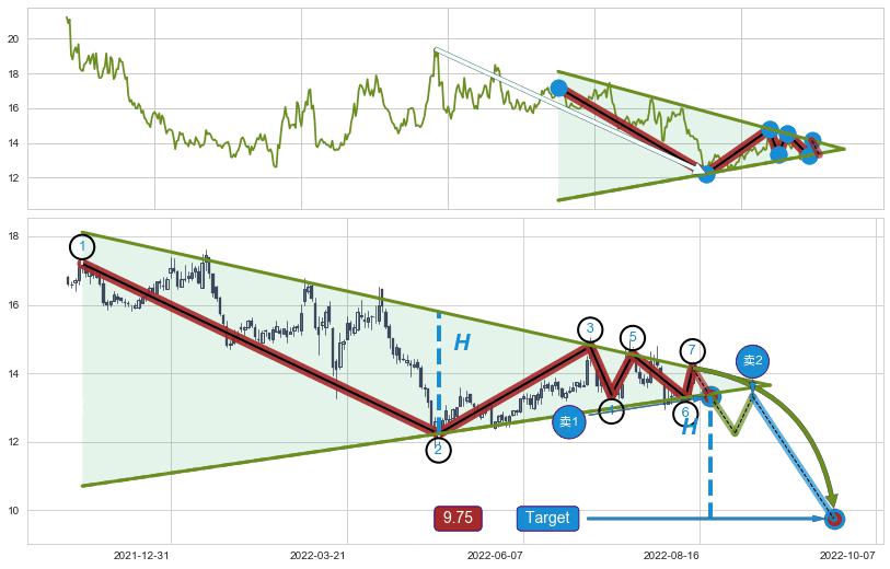 ➣ 【仅预测突破】最后价格:14.15与预测突破价格:13.32→【空间较大】后续最小【整理】第一目标价格→(2022-10-07: 9.75 )