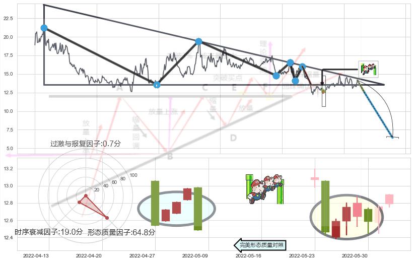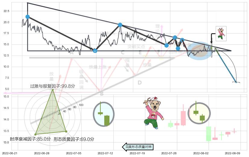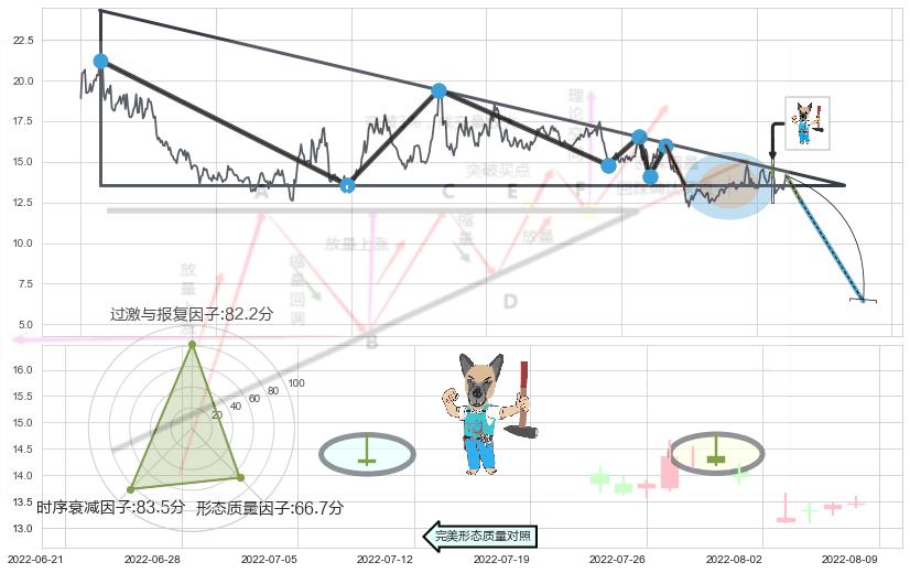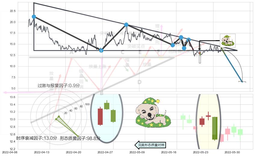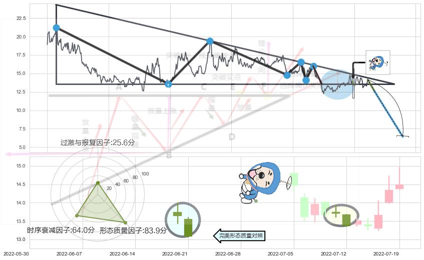 ➢ 【卖1】: 激进型 卖点→(2022-04-25: 13.58 )形成突破下降三角形整理【整理】形态