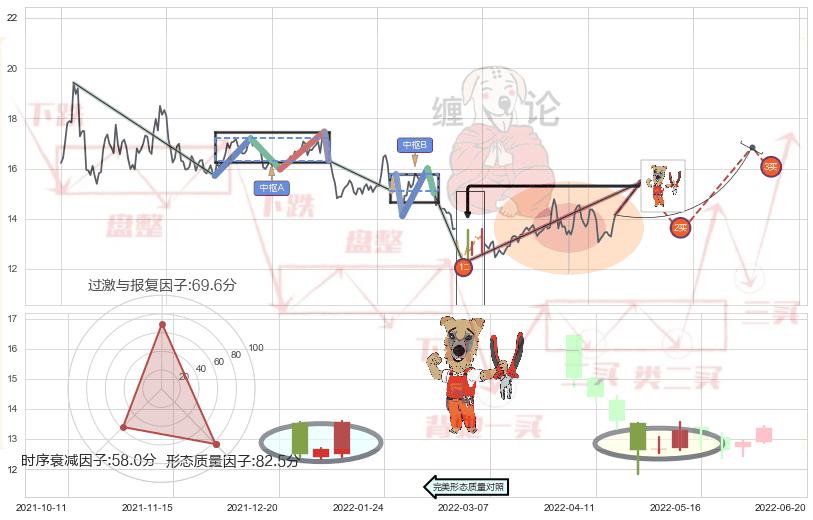 ➢ 【中枢A】:2021-11-03-2022-01-19,中枢由5笔构成,共55交易日, ZG=17.20, ZD=16.32