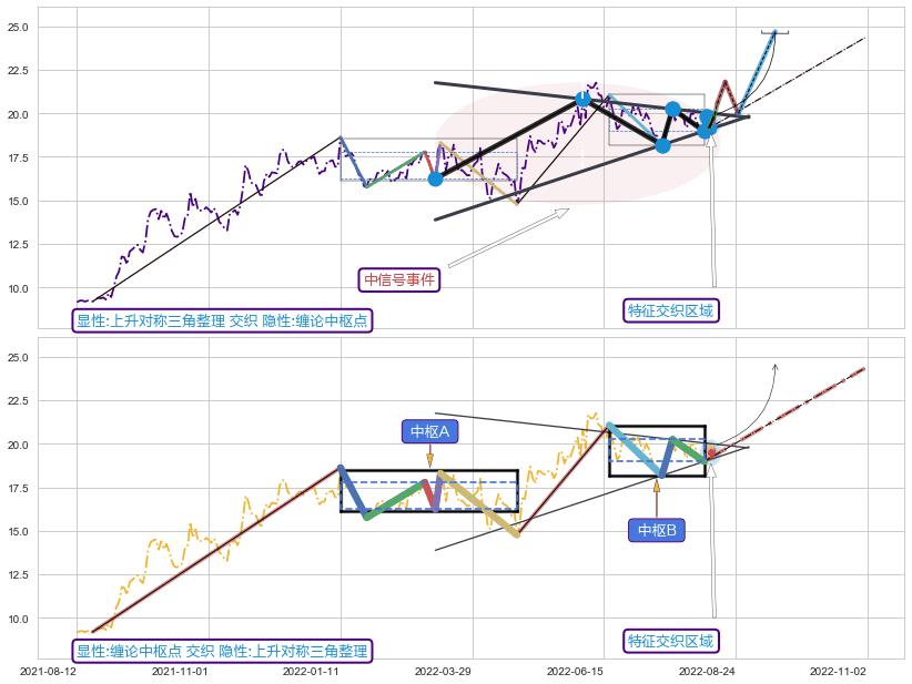 ➢ 上升对称三角整理属【中级别信号事件】缠论中枢点属【长级别信号事件】中长周期组合信号事件,中长事件长度比45.15%