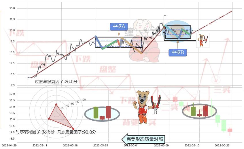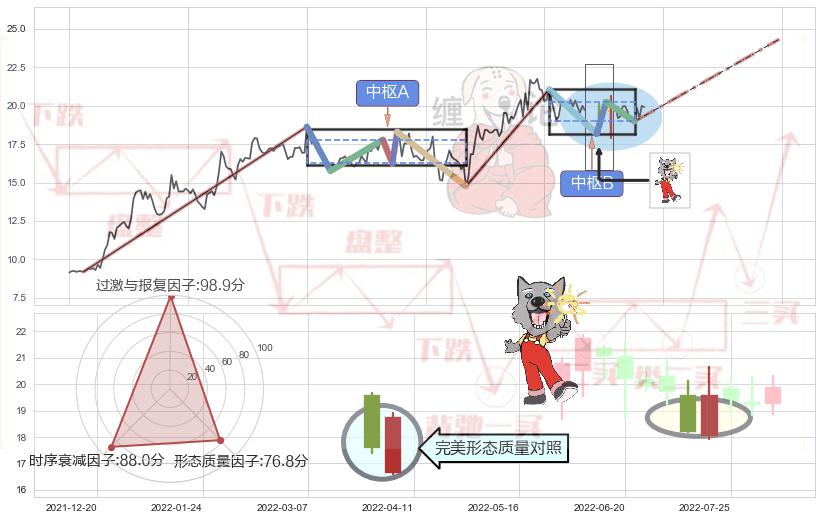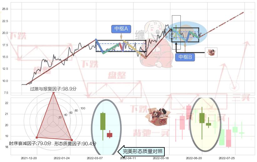 ➣ 【中枢B】:2022-06-17-2022-08-08,中枢由4笔构成,共37交易日, ZG=20.25, ZD=18.98