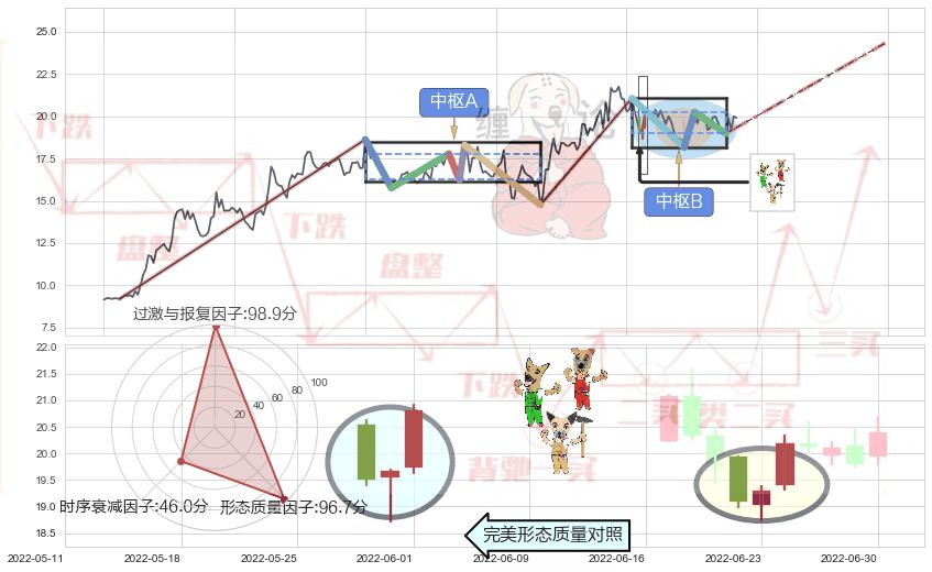 ➢ 🕰 价格走势在2022-06-24至2022-06-30期间形成上升三部曲(升势三鸦),残存影响值:3.87