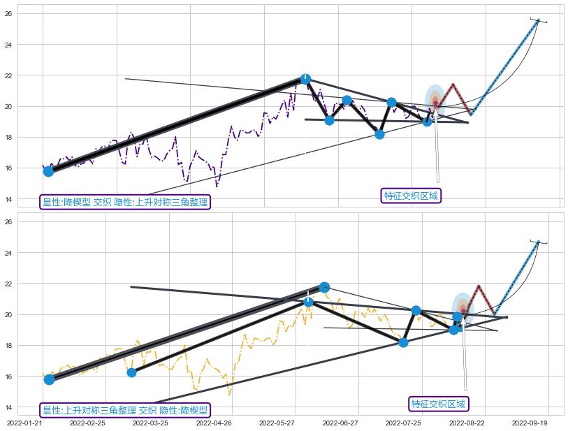 ➣ AI智能: 预测【多空区域上下窄幅震动→价格波动日益狭窄→多方占优】对称三角形中继整理向上突破,预测将在2022-08-15突破颈线, 演变成上升通道