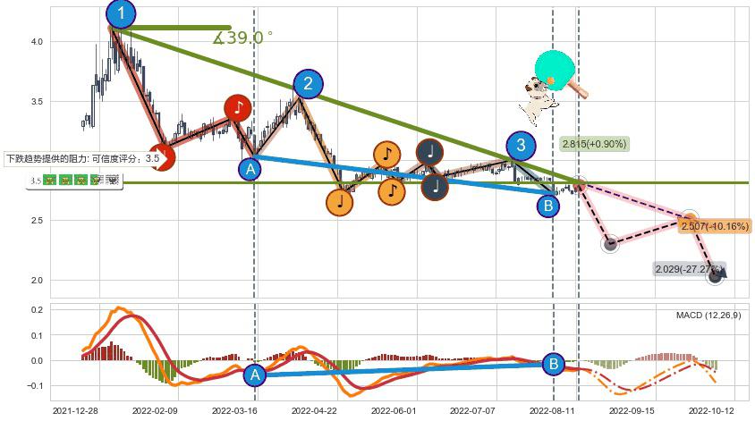 ➣ 预测:2022-09-30,【试探阻力】稳定目前下跌趋势的前提下,预测价格:2.507