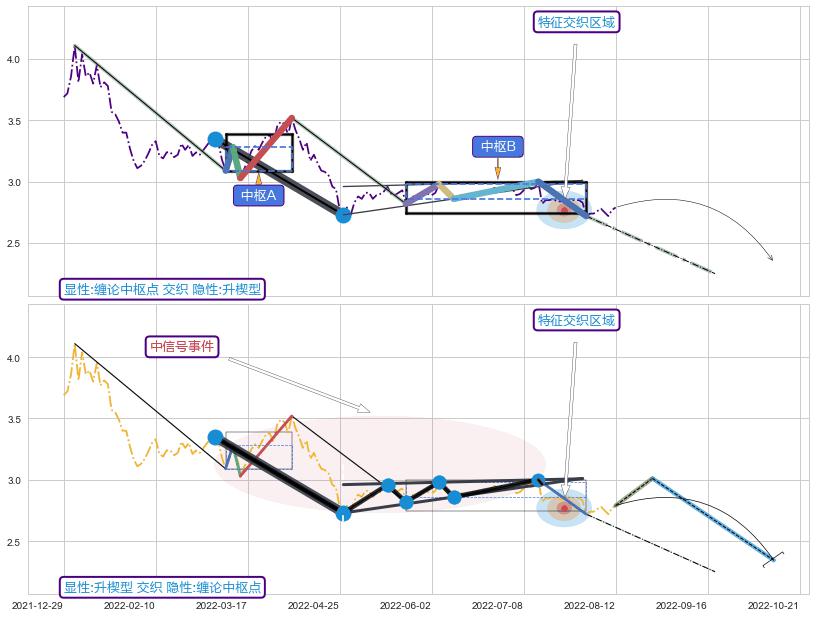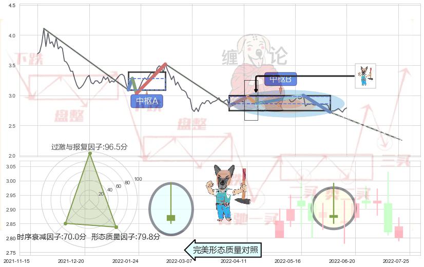 ➣ 【中枢B】:2022-05-24-2022-08-02,中枢由5笔构成,共50交易日, ZG=2.980, ZD=2.860