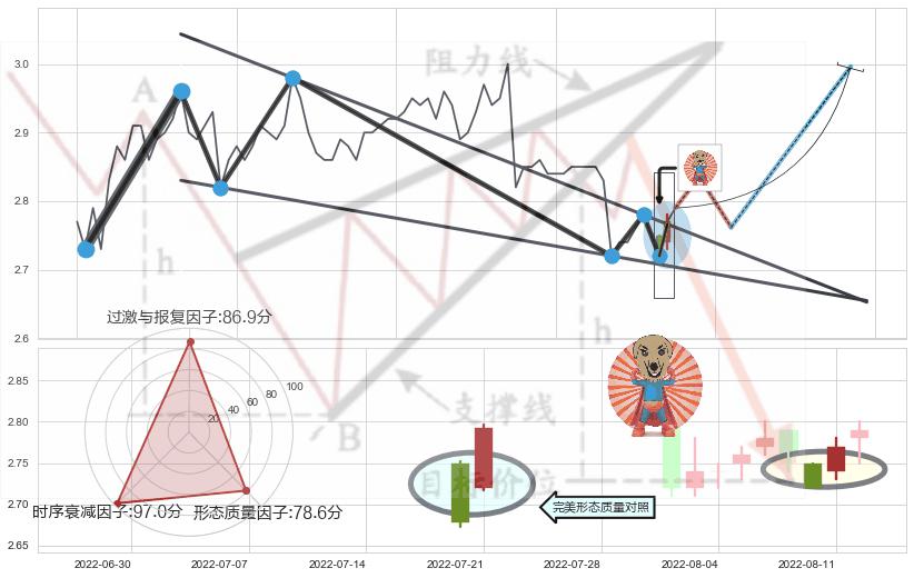 ➢ 【买1】: 激进型 买点 →(2022-08-11: 2.766 )形成突破降🚩楔型【整理】形态