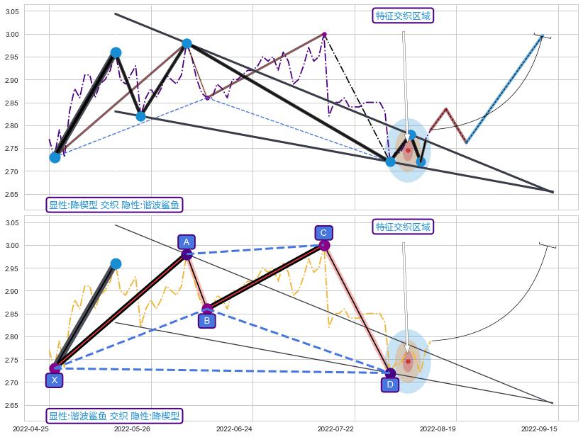 ➢ 降楔型与谐波鲨鱼信号事件周期长度级别相同,同周期信号事件
