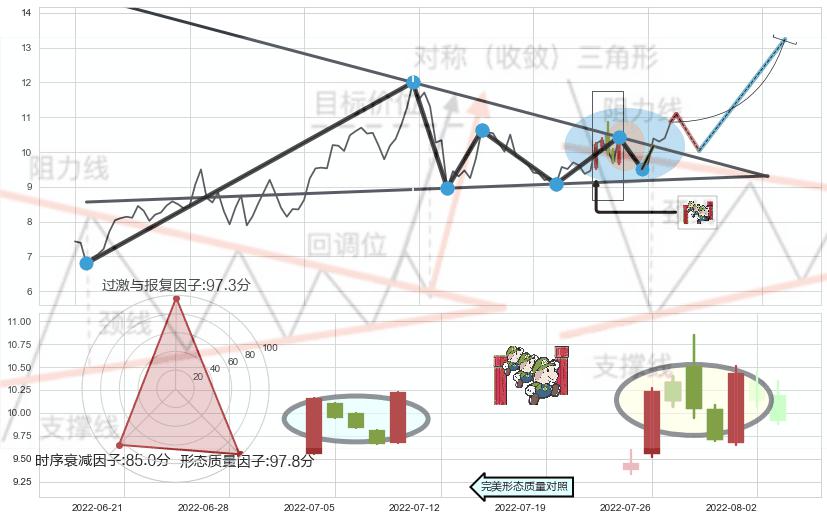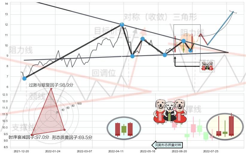 ➢ 【买1】: 激进型 买点 →(2022-08-09: 10.17 )形成突破上升【对称】三角形整理【整理】形态