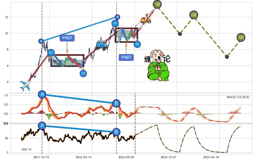 ➣ 缠论中枢点:猜想突破中枢B后持续拉升 → 上涨 → 突破中枢B阻力 → 持续趋势跟踪