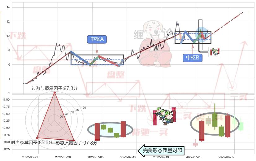 ➢ 🕰 价格走势在2022-07-25至2022-08-08期间形成两红夹一黑,残存影响值:5.63