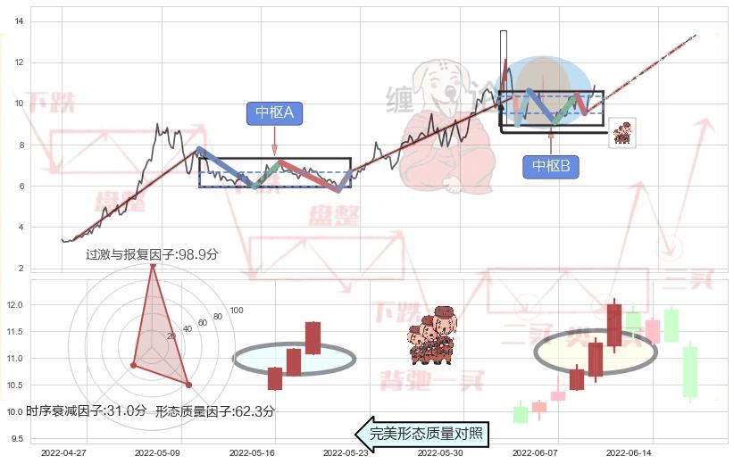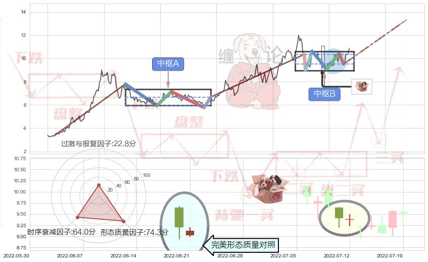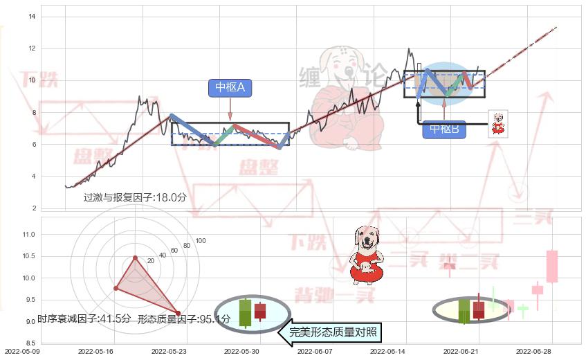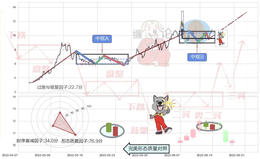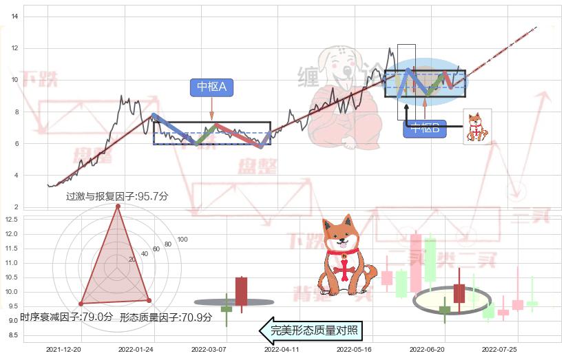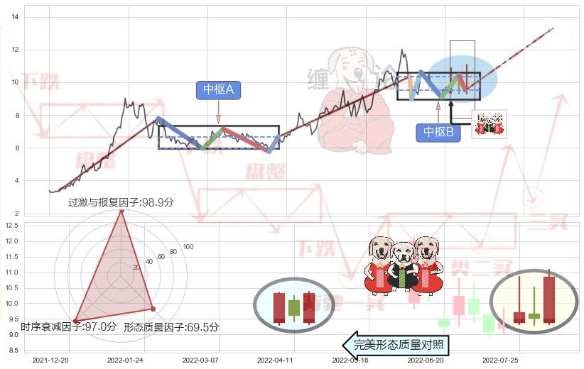 ➢ 【中枢B】:2022-06-17-2022-08-05,中枢由6笔构成,共36交易日, ZG=10.34, ZD=9.51