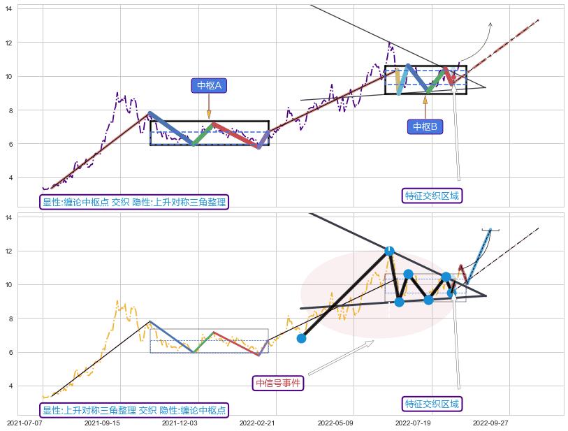➢ 上升对称三角整理属【中级别信号事件】缠论中枢点属【长级别信号事件】中长周期组合信号事件,中长事件长度比38.02%