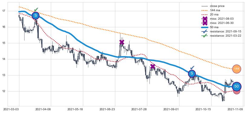 ➣ 34小时均线于(2022-06-20: 13.39)形成【死叉】基于【死叉历史模型】预测死叉后最低波谷价格: 11.91, 死叉后最低价格11.25,已经下跌超出预测最低波谷价格, 预期反弹