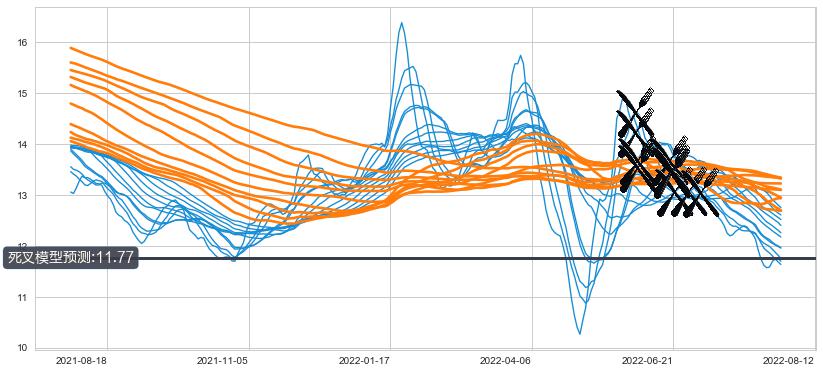 📉 多条均线基于【死叉历史模型】预测最低波谷价格的平均值: 11.77