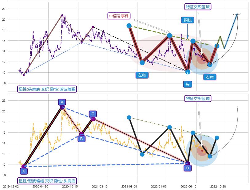 ➢ 头肩底属【中级别信号事件】谐波蝙蝠属【长级别信号事件】中长周期组合信号事件,中长事件长度比49.46%