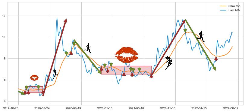 2021-12-29至2022-05-31 慢线与快线呈空头排列, 慢线与快线接触少,无缠绕