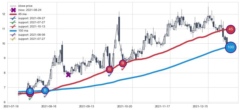➣ 45小时均线于(2022-05-27: 7.79)形成【金叉】基于【金叉历史模型】预测金叉后最高波峰价格: 8.86, 金叉后最高价格10.62,已经上涨超出预测最高波峰价格, 预期回调